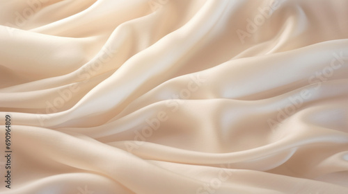 The texture of a light beige wool fabric gently billowing in the breeze. The soft, natural lighting emphasize the fabric's gentle folds