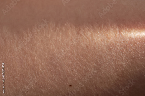 The texture of the skin with a ray of sunshine on it.