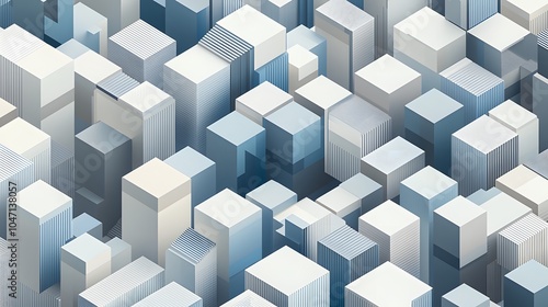 The urban landscape displays a variety of geometric structures towering over one another, illustrating modern architecture's intricate designs in a bustling city.
