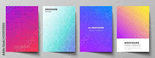 The vector layout of A4 format modern cover mockups design templates for brochure, magazine, flyer, booklet, annual report. Abstract geometric pattern with colorful gradient business background.