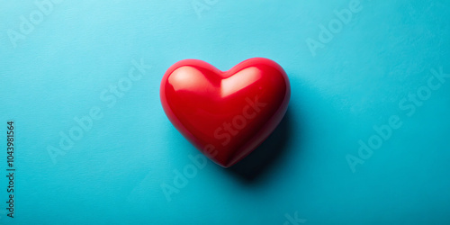 The vibrant red heart stands out against a soothing blue backdrop, evoking feelings of love and warmth in a simple, yet striking arrangement