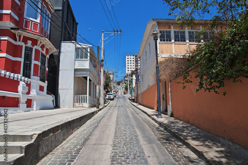 The vintage street with art in Valparaiso, Pacific coast, Chile