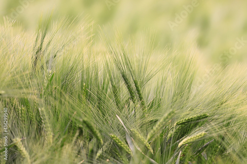 The wheat field begins to ripen and turn yellow ...