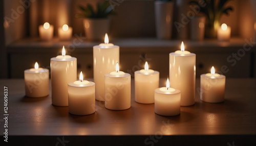The Wheel of the Year. Candlelit Yule night ambiance on wooden table, cozy celebration