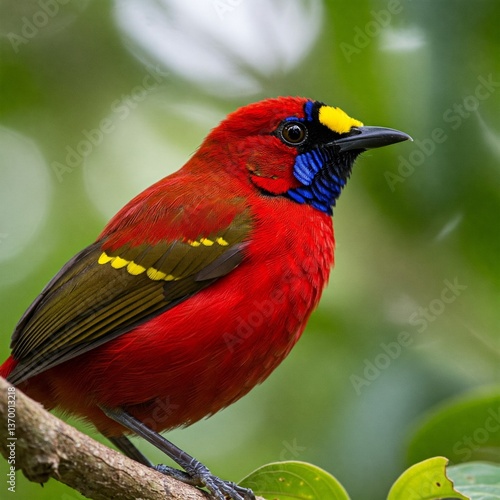 The Wilson’s Bird-of-Paradise – A Tiny Feathered Gem, Displaying Vibrant Red, Blue, and Yellow Colors