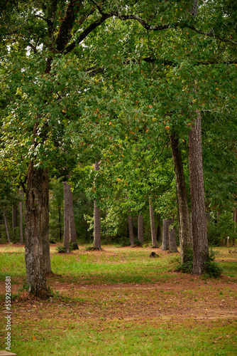 THE WOODLANDS, TEXAS - NOVEMBER 2022: William Goodrich Jones state forest in Conroe, to the north of Houston photographed in the fall with golden colors in the tree leaves, blue skies, on a sunny day