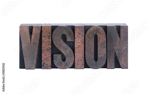 the word 'vision' in old ink-stained wood type