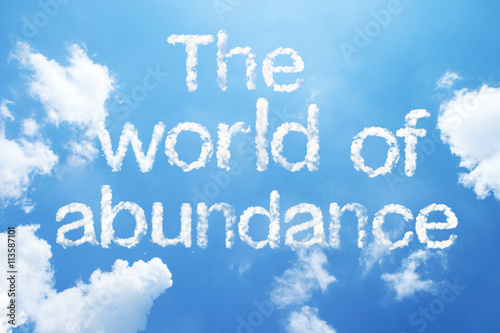 "The world of abundance" cloud word on sky.
