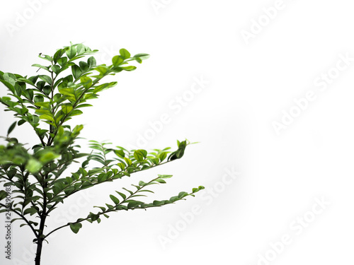 The young plant grows from a fertile soil is isolated on a white background