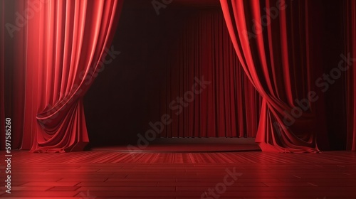 Theater Stage Red Curtains and Spotlight Created with Generative AI Technology