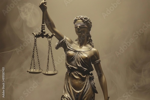 Themis statue, symbol of law and justice, holding scales and blindfolded, representing balance and impartiality