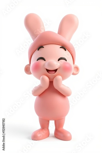 there is a pink toy with a bunny hat on