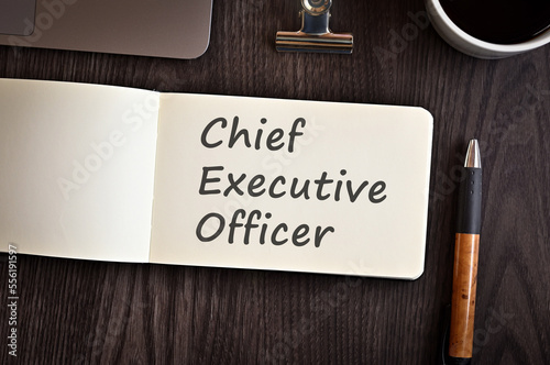 There is notebook with the word Chief Executive Officer. It is an eye-catching image.