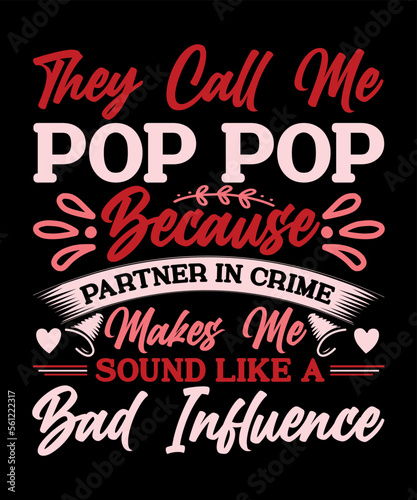they call me pop pop because partner in crime makes me sound like a bad influence. Happy valentine shirt print template, 14 February typography design