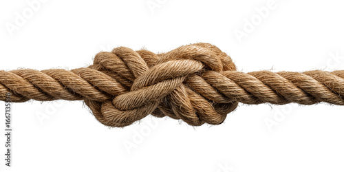 Thick rope tied with a knot on black tying securing isolated on a transparent background
