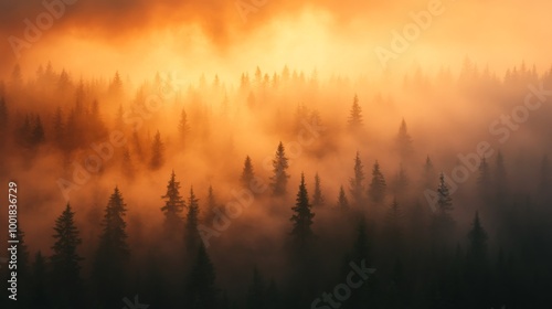 Thick smoke billows from a raging wildfire in a forest, casting an intense orange light on the trees as the sky darkens, creating an urgent atmosphere