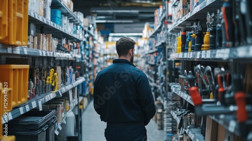 Thief alert at a hardware store, employee noticing suspicious behavior. Featuring quick action and tool protection