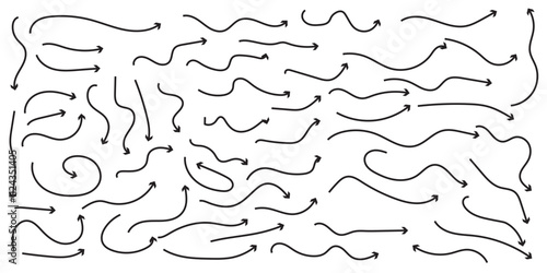 Thin arrows set for business plan, presentation and education. Sign, Symbol, Hand drawn arrow collection.