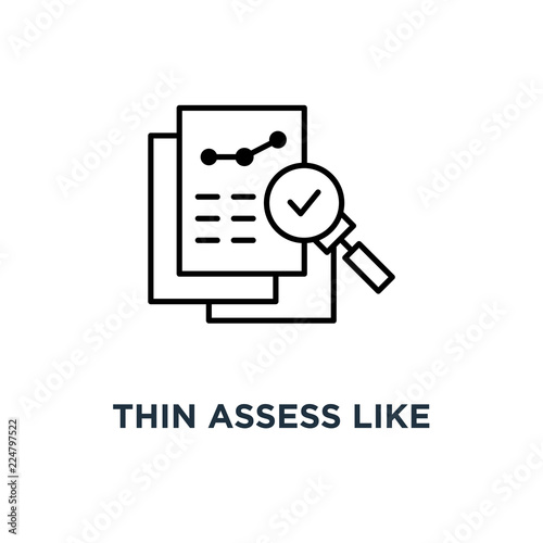 thin assess like review audit risk icon, symbol of find internal vulnerable bill or data research and survey concept linear trend quality logotype graphic art design
