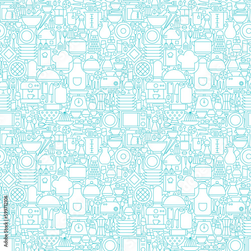 Thin Line Kitchen Appliances and Cooking White Seamless Pattern. Vector Website Design and Seamless Background in Trendy Modern Outline Style. Kitchenware Utensils.
