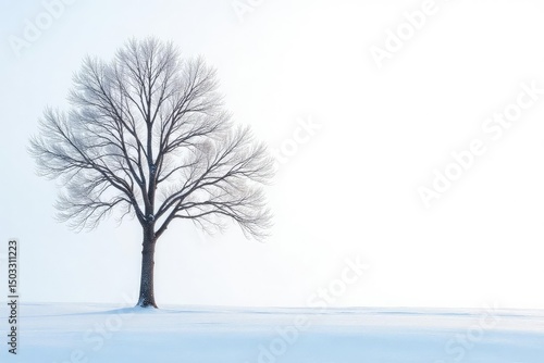 Thin tree branches against a bright white background, winter landscape, frosty