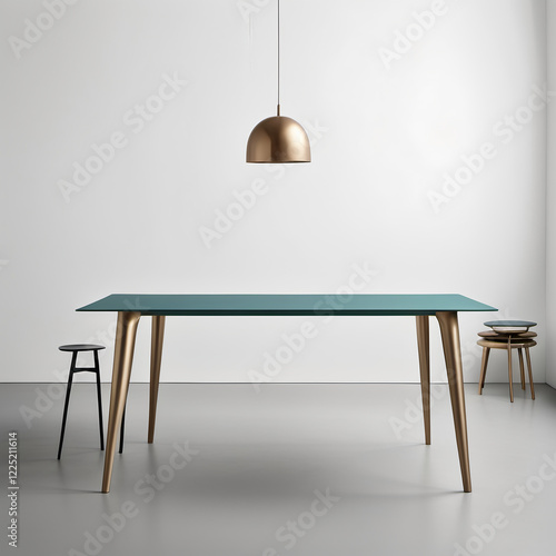Thin-Legged Dining Table – A minimalist dining table with an ultra-thin, solid-colored top supported by barely visible metallic legs.