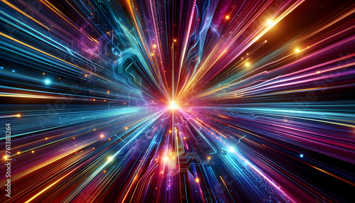 This abstract background bursts with vibrant neon colors, creating a sense of high-speed energy and futuristic aesthetics. Brilliant neon amethyst and ruby hues converge into a high-energy core.