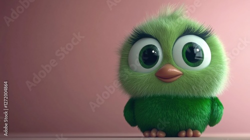This adorable green bird character has big, expressive eyes, a fluffy body, and a cheerful smile, making it perfect for children's content or animations featuring friendly creatures.