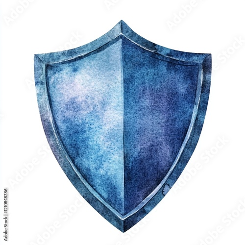This artwork features a watercolor representation of a cyber security shield, highlighting intricate textures in shades of blue, symbolizing protection and digital safety