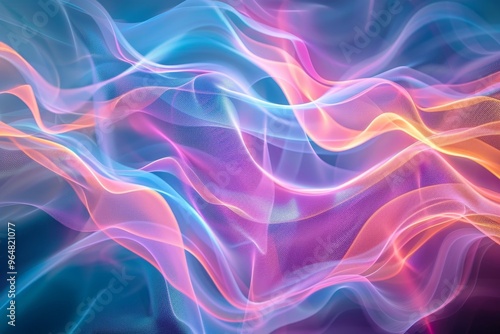 This artwork features vibrant, flowing waves in various colors, forming a captivating display of motion and light that evokes a sense of tranquility and energy.