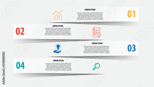 This business infographic template illustrates four steps with icons and colorful numbers, providing clear visual guide for presenting information in professional way