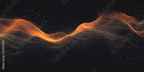 This captivating abstract image showcases elegant waves of golden particles flowing gracefully across a deep black background, creating a visually stunning effect.