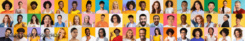 This collection showcases a variety of individuals from different backgrounds, each displaying joy and enthusiasm against colorful backdrops. The diverse expressions highlight unity in diversity.