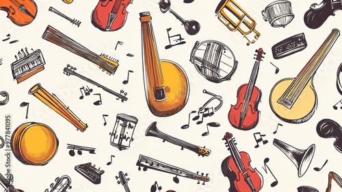This design features simple drawings of musical instruments. It's perfect for projects about music, entertainment, or music festivals.
