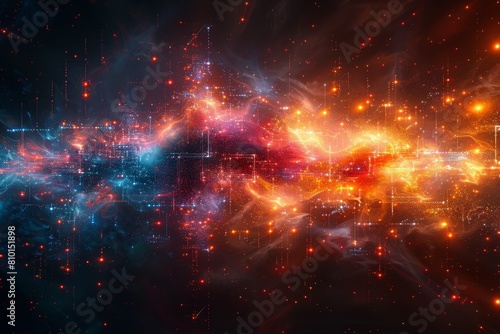 This digital art piece emanates the energy of a vibrant nebula, blending data streams with the natural beauty of a cosmic phenomenon