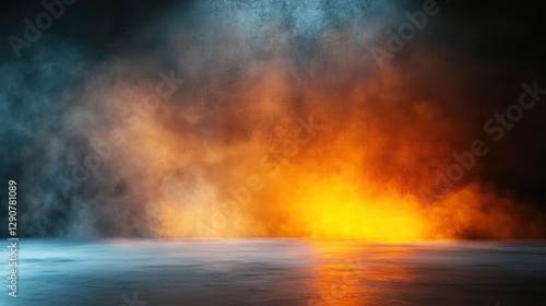 This dynamic image showcases swirls of smoke in orange and blue tones, set against a dark backdrop, conveying a sense of fluidity and emotional depth.