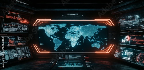 This futuristic halo blue digital globe is flowing with digital data. It illustrates the latest developments in communication and technology to promote innovation.