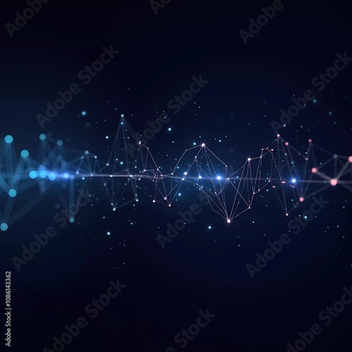 This graphic presents a stunning digital representation of audio waves intertwined with technology data patterns in a dark background. The glowing lines pulse with energy. Generative AI