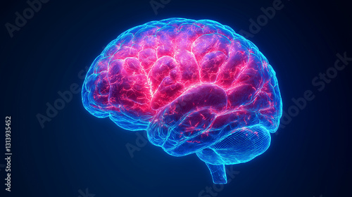 This illustration showcases a human brain highlighted with neon colors, representing neural connections and activity. The design emphasizes the intricate details of brain structure and function
