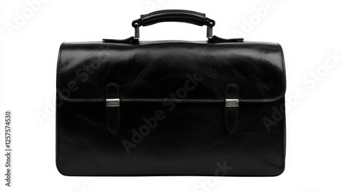 This image captures a classic black leather briefcase, representing professionalism, success, business, and executive style. It serves as a perfect accessory for a modern professional on the go
