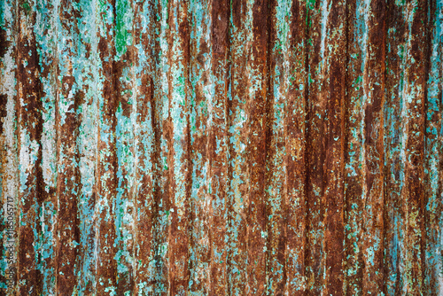 This image features a closeup view of a rusty metal wall, which is adorned with patches of blue paint that add an interesting contrast to the overall texture and appearance of the surface