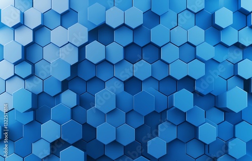This image features a dynamic pattern of blue hexagons, creating a visually striking backdrop suitable for various design projects, digital art, or modern presentations.