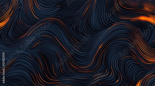 This image features a dynamic wave pattern with flowing lines in dark tones, accented by warm orange highlights, creating an abstract and visually striking design.