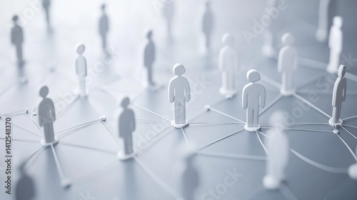 This image features abstract paper cutout figures representing individuals connected in a network, symbolizing teamwork, collaboration, and communication in a modern environment.
