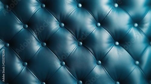 This image showcases a luxurious and elegant blue leather upholstery with button tufting, highlighting texture and craftsmanship that add sophistication to any setting.