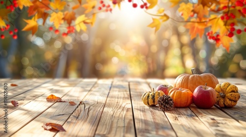 This is a photo of a wooden table with a variety of pumpkins and gourds on it