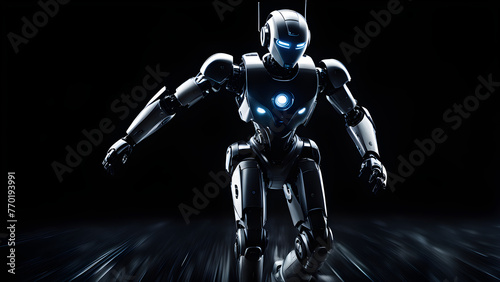 This is an image of a robot equipped with artificial intelligence running. AI robot image. Generative AI.