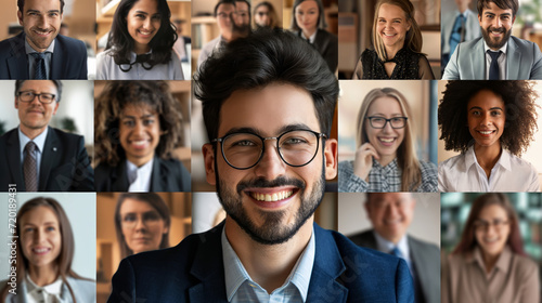This photo showcases a collage of many different people from diverse backgrounds, all of whom are smiling.