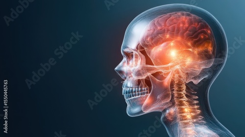 This striking image showcases a transparent skull, highlighting the intricate details of the brain and spinal cord, symbolizing the complexity of human anatomy.