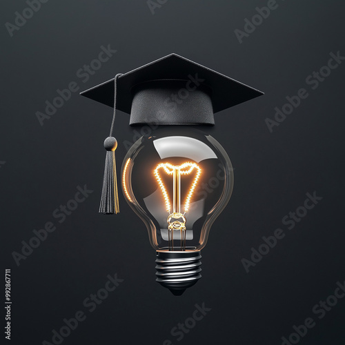 This vibrant illustration combines a lightbulb and graduation cap, symbolizing innovation and education. Set against a pink background, it captures the essence of creativity and future success